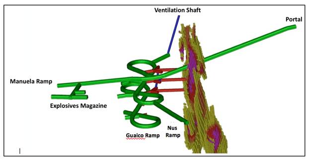 - The access tunnel to the Manuela structure advanced to a total length of 111 m;