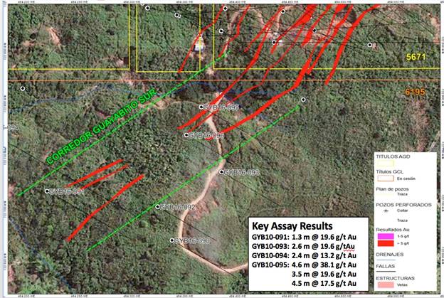 - GYB10-095:� 4.6 m @ 38.1 g/t Au