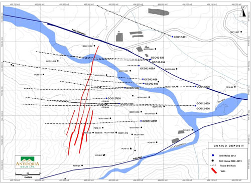 Figure 1 – Guaico Deposit – Plan View. Year 2012 Drilling Sites.