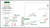 Figure 1 Cisneros Project - Current Exploration and Drilling Areas including Guaico