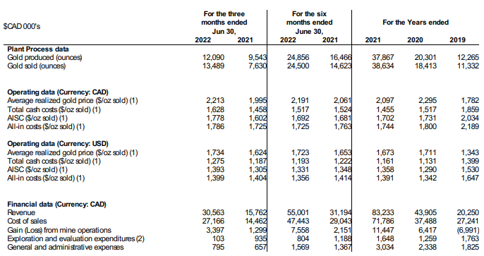 For the second quarter of 2022, the company has again shown a significant improvement in its financial performance in comparison to the previous year. This is attributable to continued improvements in mine planning and mining operations, process plant optimizations and increased processing of third-party mineralized material.