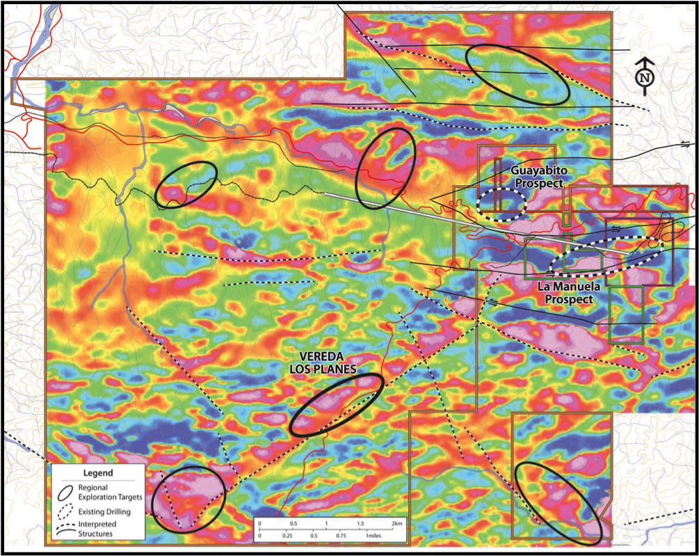 - On the regional exploration activities, 6 new exploration targets, similar in size to the Guayabito and Manuela Prospects have been identified (see Figure 1) with one of the targets, Los Planes, being ready to drill.