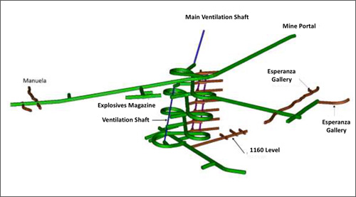 At Guayabito, work is progressing well on the mine portal structure. The retaining wall at the entrance has been covered with a grout curtain and a series of cable bolts have been installed to provide overall stability.