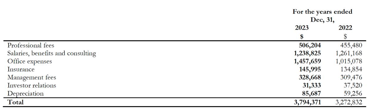 - Directors of the Company have 3,000,000 options outstanding and exercisable at December 31, 2023.