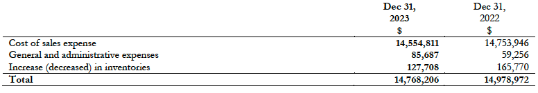 The amount of inventory recognized as a cost of production for the year ended December 31, 2023 was $ 90,908,214 ($ 93,348,122 – December 31, 2022).