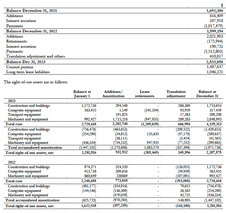 The Company has a right-of-use asset related to leases of the office space in Medellin, mine equipment, technology equipment and camp at the site.