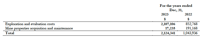 - During the year ended December 31, 2023, the Company advanced of $72,946 (December 31, 2022 $Nil) to Inprosmin S.A.