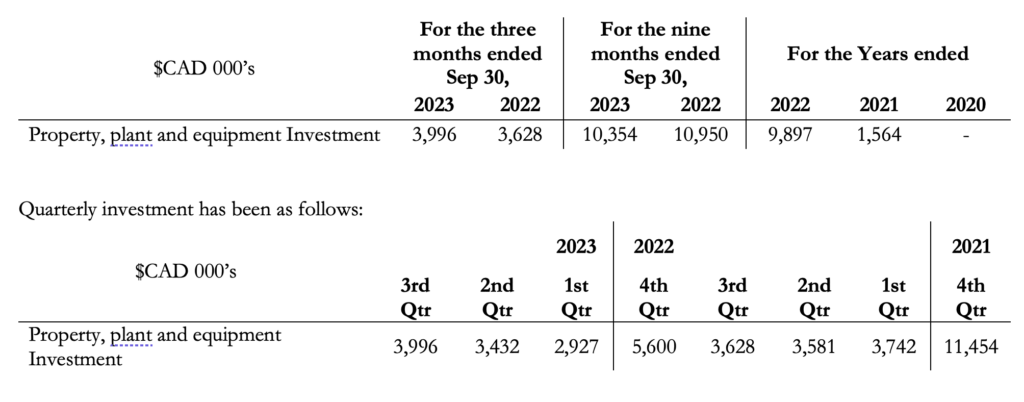 The Company began construction activities during 2015. On March 1, 2019, the Company declared it had achieved commercial production. Most of the property, plant and equipment investments are related to mine and plant construction, including the plant expansion to 1,200 tpd completed in 2020. During 2021 and third quarter of 2022 the Company has invested mainly in mine equipment and the expansion of the tailings dam.