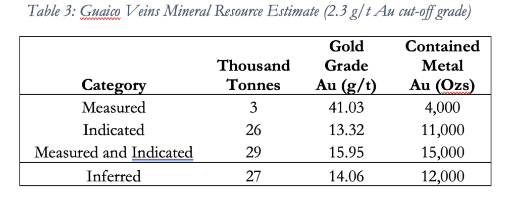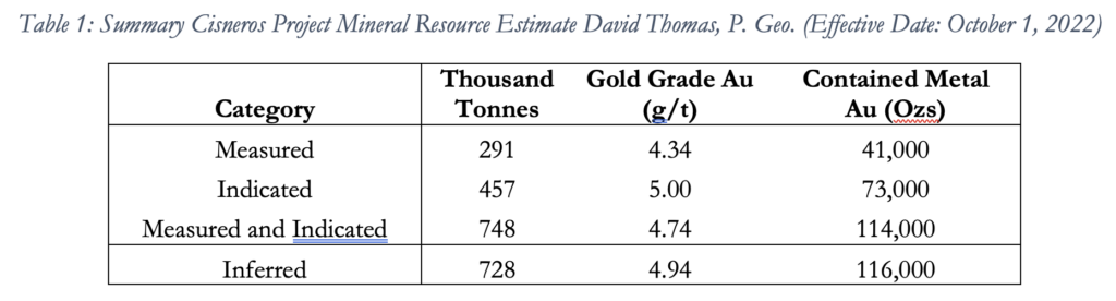 The updated MRE for Cisneros has been completed according to CIM Definition Standards and it is supported by a NI 43-101 independent report published and filed on the Company’s website and SEDAR profile on December 16, 2022.