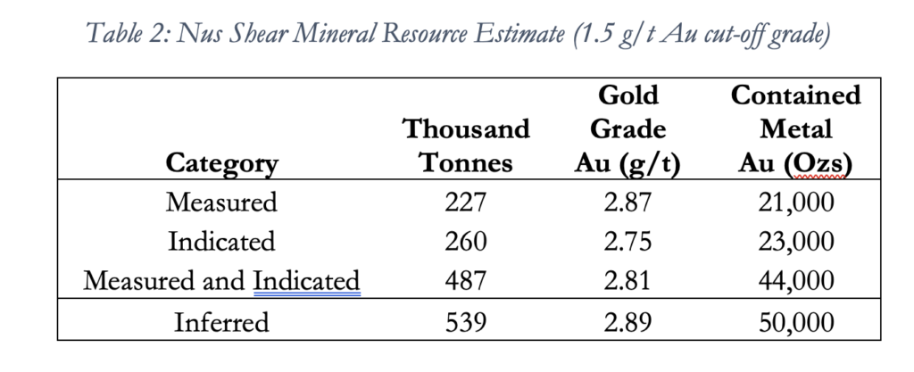 • For the Nus shear, raw drill hole assays were composited to 2.0 m lengths broken at domain boundaries. In the Guaico and Guayabito vein models, assays were composited to a maximum length of 1 m with shorter length composites where the veins are less than 1 m in width.